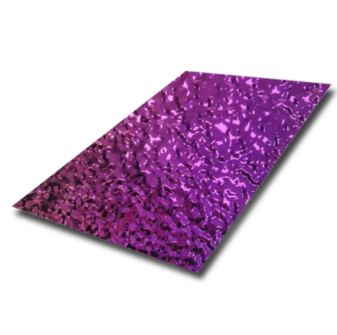 우리의 보라색 PVD 미러 워터 리플 스테인리스 스틸 시트와 함께 건축 프로젝트를 향상시킵니다.이 혁신적인 장식 재료는 스테인리스 스틸의 영원한 내구성을 최첨단 미학과 결합합니다.표면은 고 정밀 8K 미러 닦기 과정을 거쳐 생동감 넘치는 깊은 보라색 색조를 얻기 위해 정교한 PVD (물리 증기 퇴적) 진공 접착 처리 과정을 거칩니다.특징적 인 "물 물결" 또는 "머머드" 구조 는 금속 에 부각 되어 있다, 빛 아래 물의 부드러운 움직임을 모방하는 동적인 3D 효과를 만듭니다.